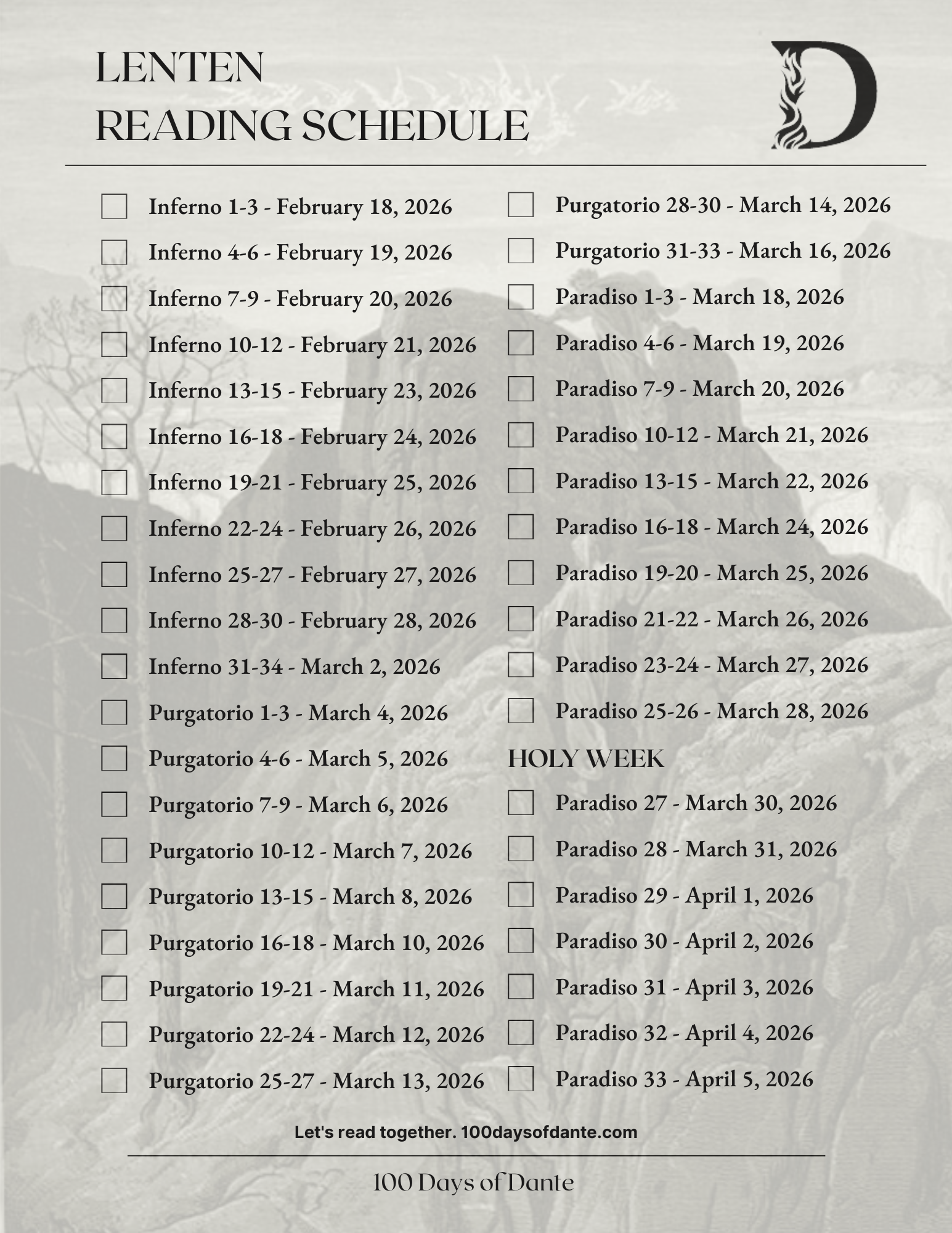 Want to read the Divine Comedy during Lent this year? You can read the entire Divine Comedy in 40 days and finish with us on Easter Day: